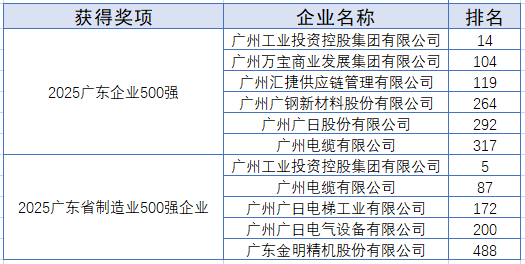 2025广东企业500强双榜公布 广州工控集团多家企业入选
