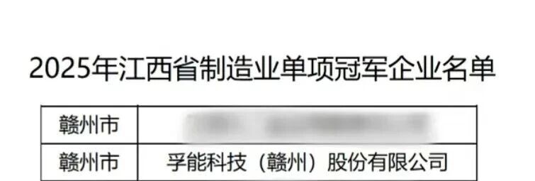 近日,凭借技术水平、市场地位和创新能力等多维度综合实力,孚能科技还第三度蝉联“江西省制造业单项冠军企业”称号。