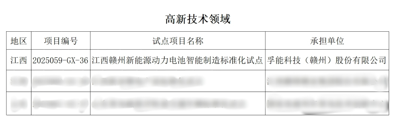 近日,国家标准化管理委员会公布2025年度国家标准化试点项目名单,全国共159个项目入选,广州工控集团旗下孚能科技“江西赣州新能源动力电池智能制造标准化试点”入围。这标志着孚能科技在推动高新技术产业化、提升行业标准话语权方面迈出关键一步。