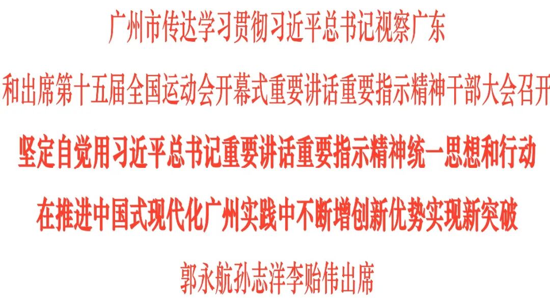 广州市传达学习贯彻习近平总书记视察广东和出席第十五届全国运动会开幕式重要讲话重要指示精神干部大会召开
