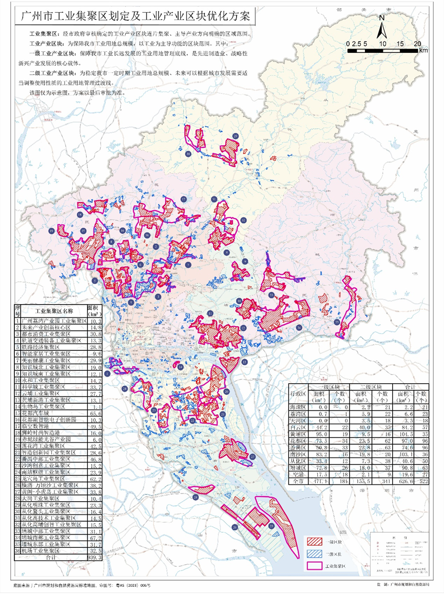 广州市工业集聚区划定及工业产业区块优化方案图